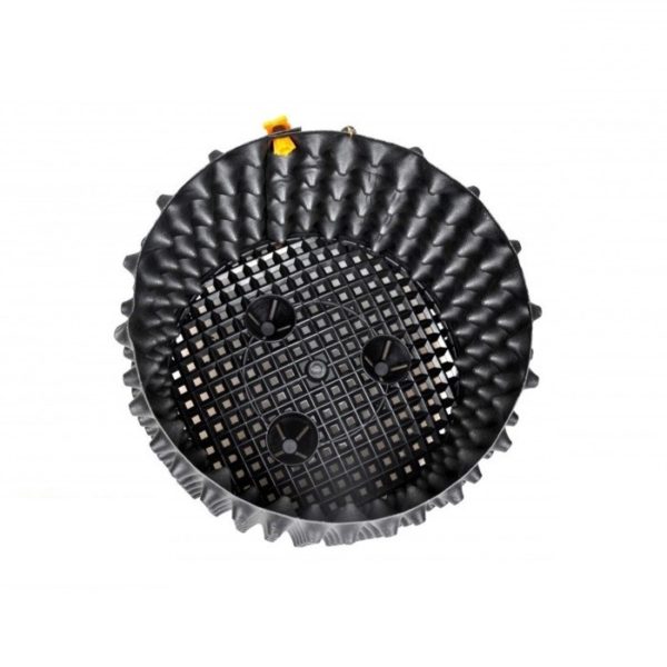 Il suo lato esterno è costituito da tondeggianti coni, bucati centralmente, in grado di attivare il meccanismo detto di auto-potatura delle radici, che consiste appunto nella potatura di queste a contatto con l’aria. Si promuove così lo sviluppo di un nuovo apparato radicale più filamentoso e più consistente, nonché tale da evitare tutti i processi di spiralizzazione.