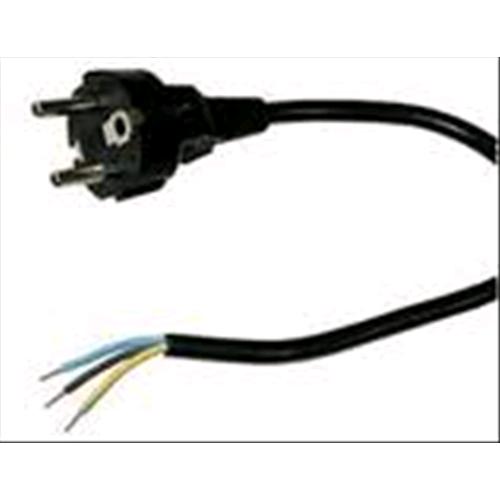 Il cavo è composto da tre cordine di sezione 1mm, 1 blu ,1 marrone, 1 giallo\verde rivestite da guaina nera, ad una estremite è dotato di spina schuko; dall’ altra parte ci sono le tre cordine spelate