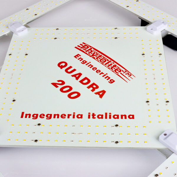 Mano a mano che i germogli si allungano potrete aumentare le emissioni in maniera graduale e sempre osservando le vostre piante. Sono rari, ma possibili, i casi in cui si possa danneggiare germogli con troppa intensità luminosa. Fate anche attenzione a che le pianticelle non “filino” ovvero non si allunghino troppo. Questo è indicativo di scarsa luce. In questo caso dovrete aumentare le emissioni o avvicinare Quadra alle cime. Quando le piante avranno preso un colore verde intenso potrete aumentare al massimo l’emissione e/o avvicinare Quadra alle cime. La distanza consigliata dalle cime è, a seconda delle piante e della loro taglia, fra i 30 ed i 90cm.Quando le piante andranno in fioritura potrete, sempre con accortezza e controllo visivo frequente, avvicinare Quadra anche fino a 15/20 cm dalle cime.